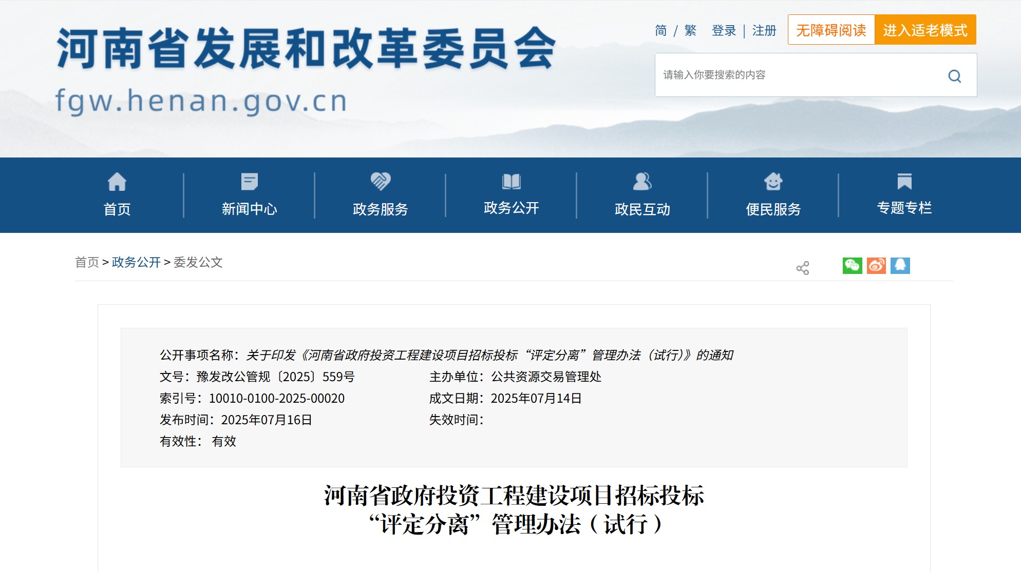 河南省發(fā)布《河南省政府投資工程建設(shè)項目招標(biāo)投標(biāo)“評定分離”管理辦法(試行)》
